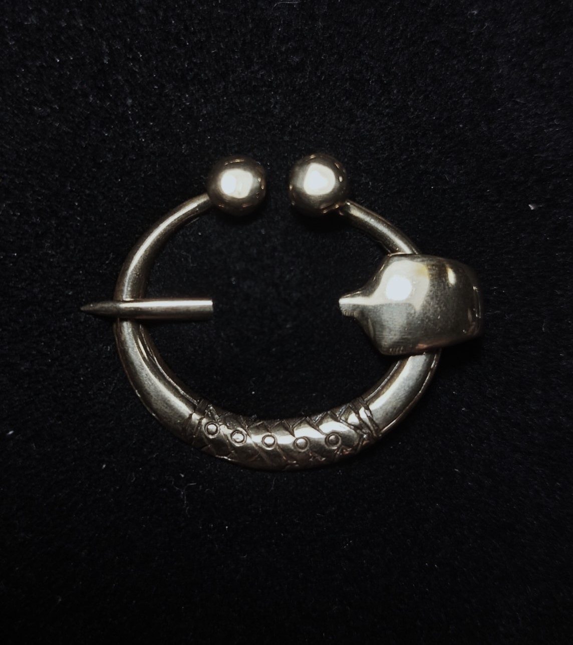 Miehen takin solki Ylöjärven Mikkolan viikinkiaikaisista kalmistoista. Alkuperäinen solki on hopeaa.